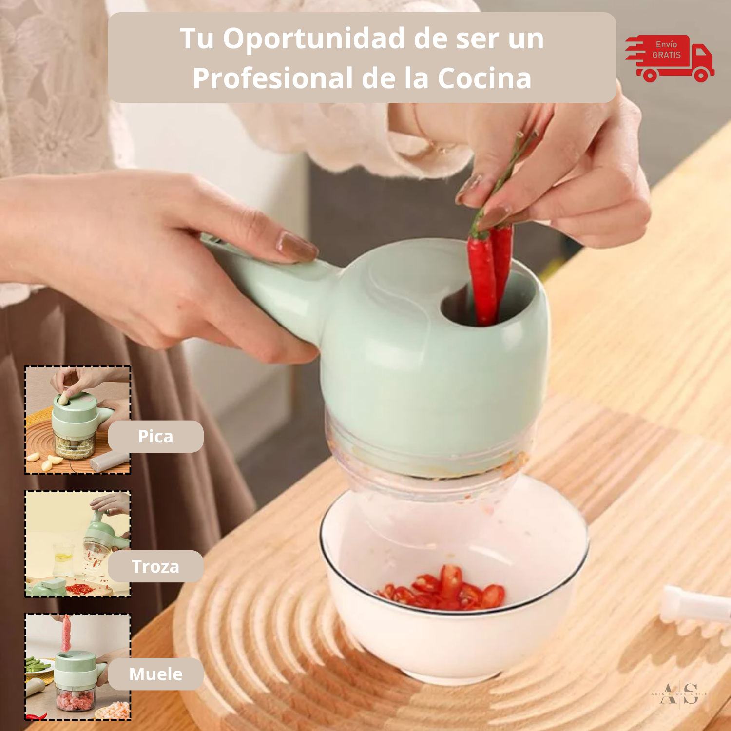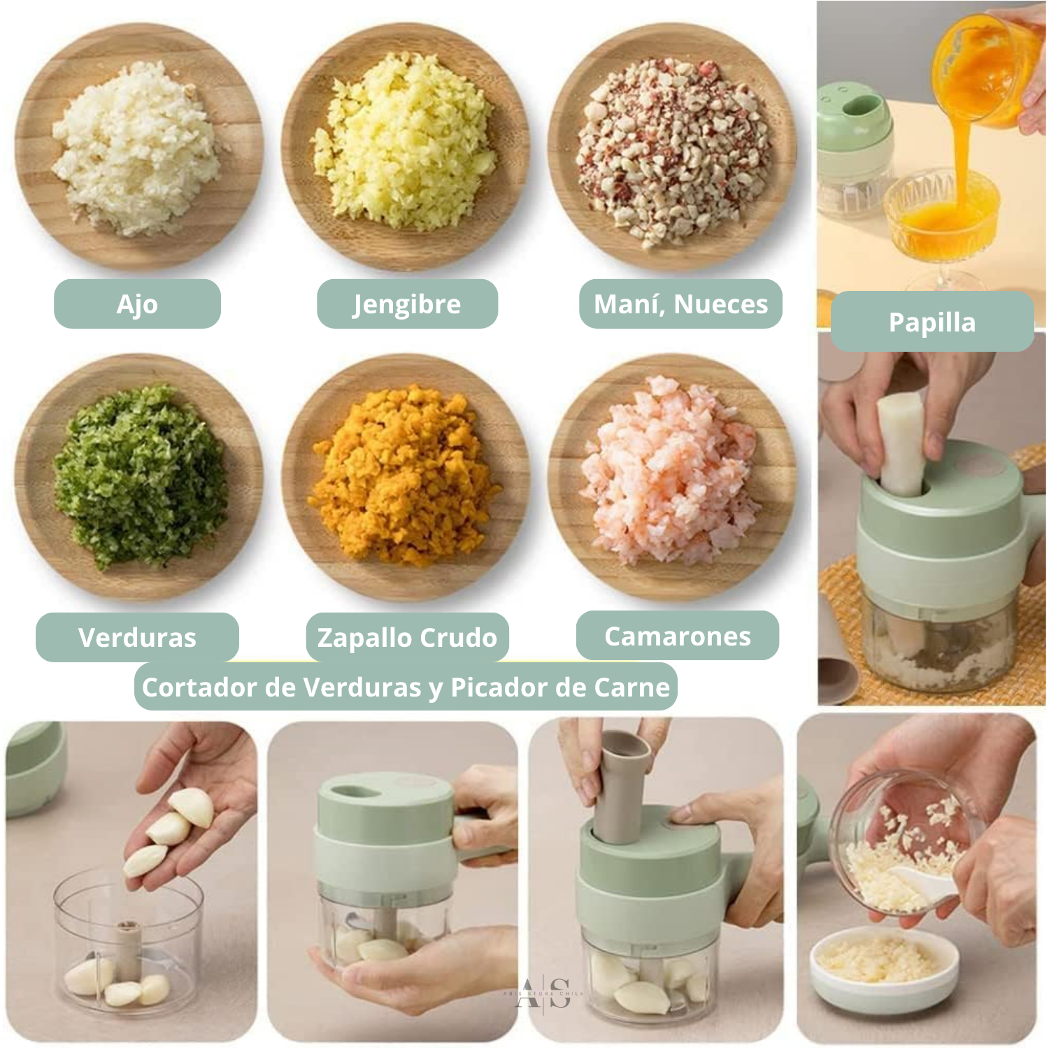 ¡Ya es hora de renovarte¡ Transforma tu experiencia culinaria con nuestro Cortador, Picadora y Triturador de Vegetales Recargable con USB. Este innovador dispositivo combina un cortador de verduras eléctrico y una picadora de carne eléctrica en una herramienta multifuncional.