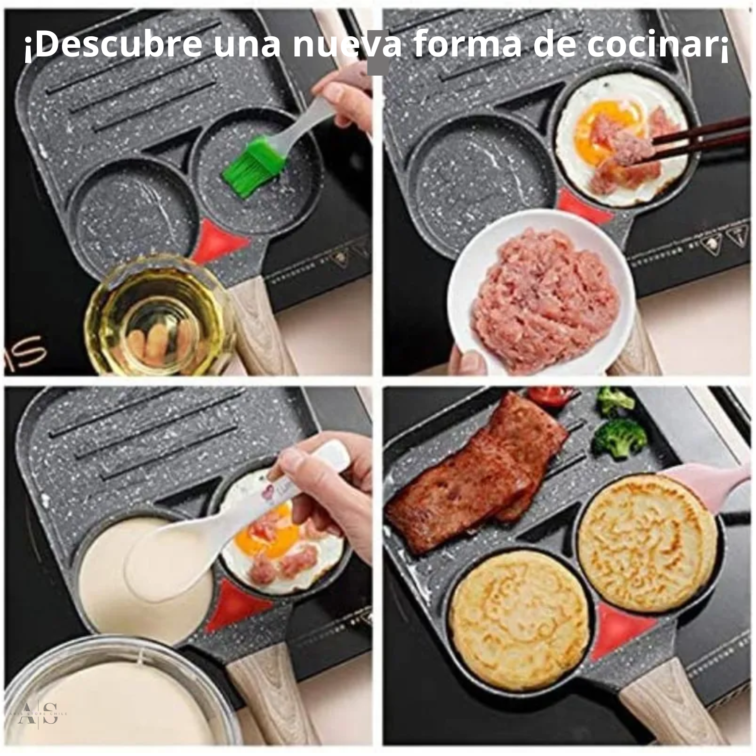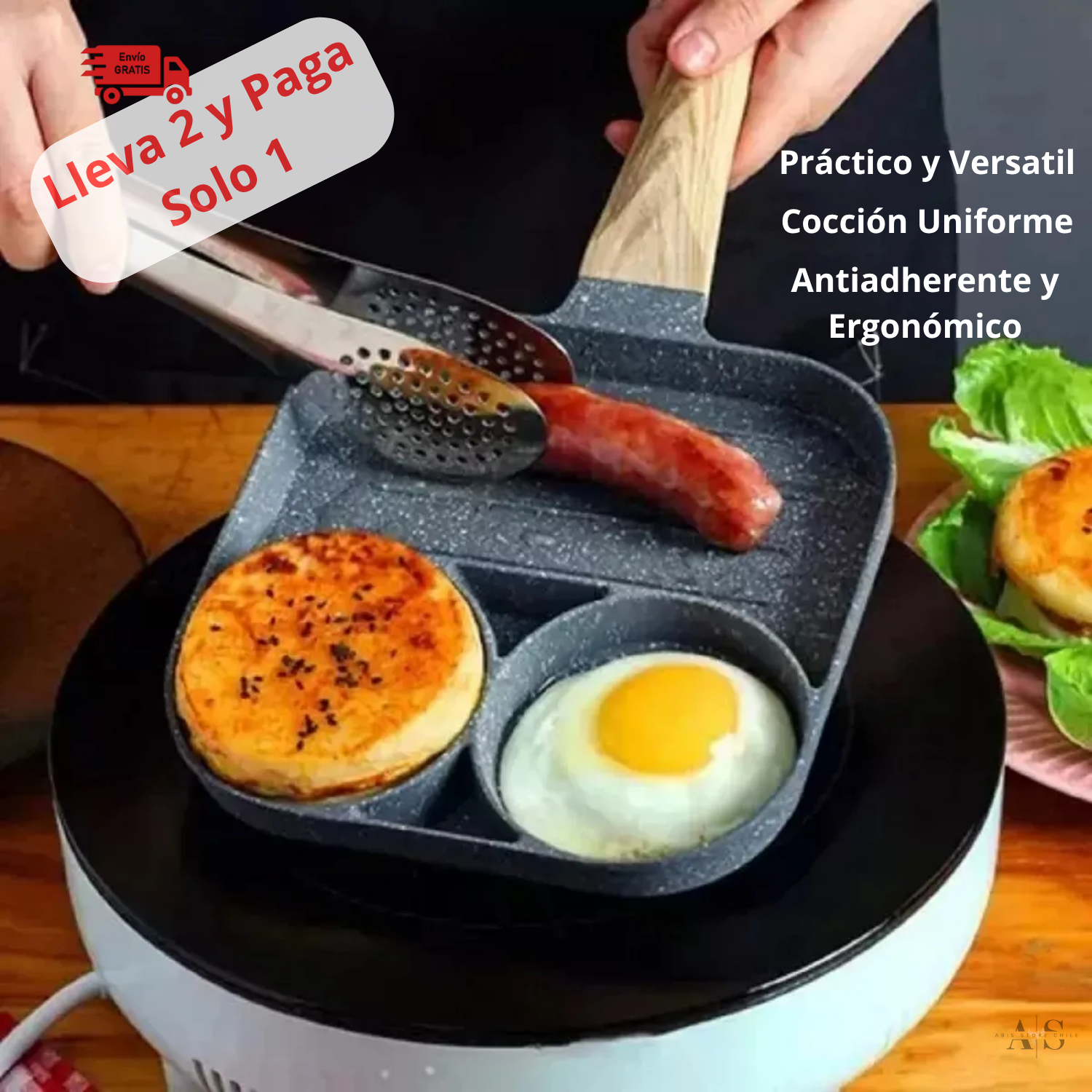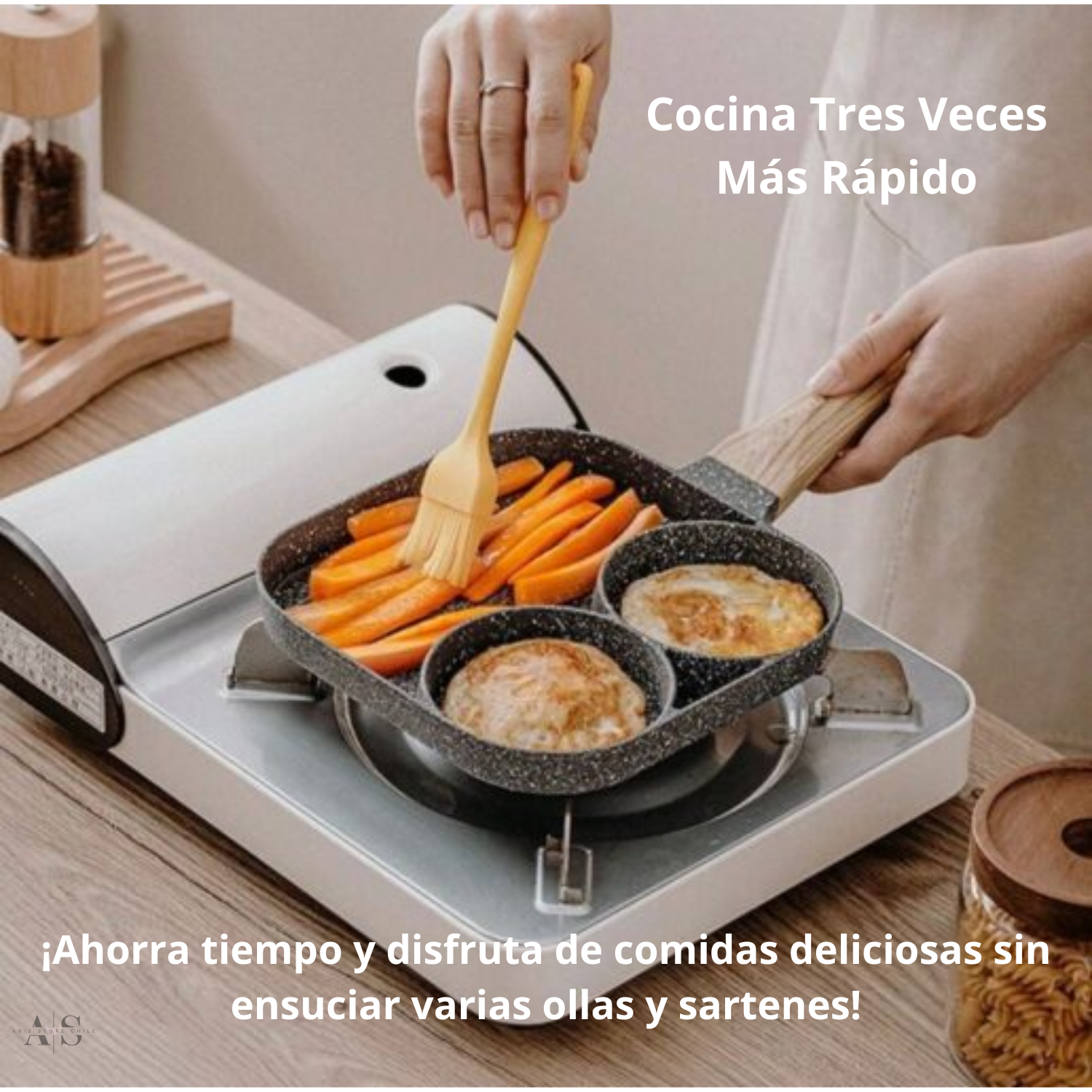 ¡Transforma tu día con esta Sartén Antiadherente Multifuncional de 3 compartimentos! Diseñada para quienes buscan practicidad, rapidez y limpieza en cada comida. Ideal para preparar comida completas en pocos minutos y sin ensuciar ollas extra.